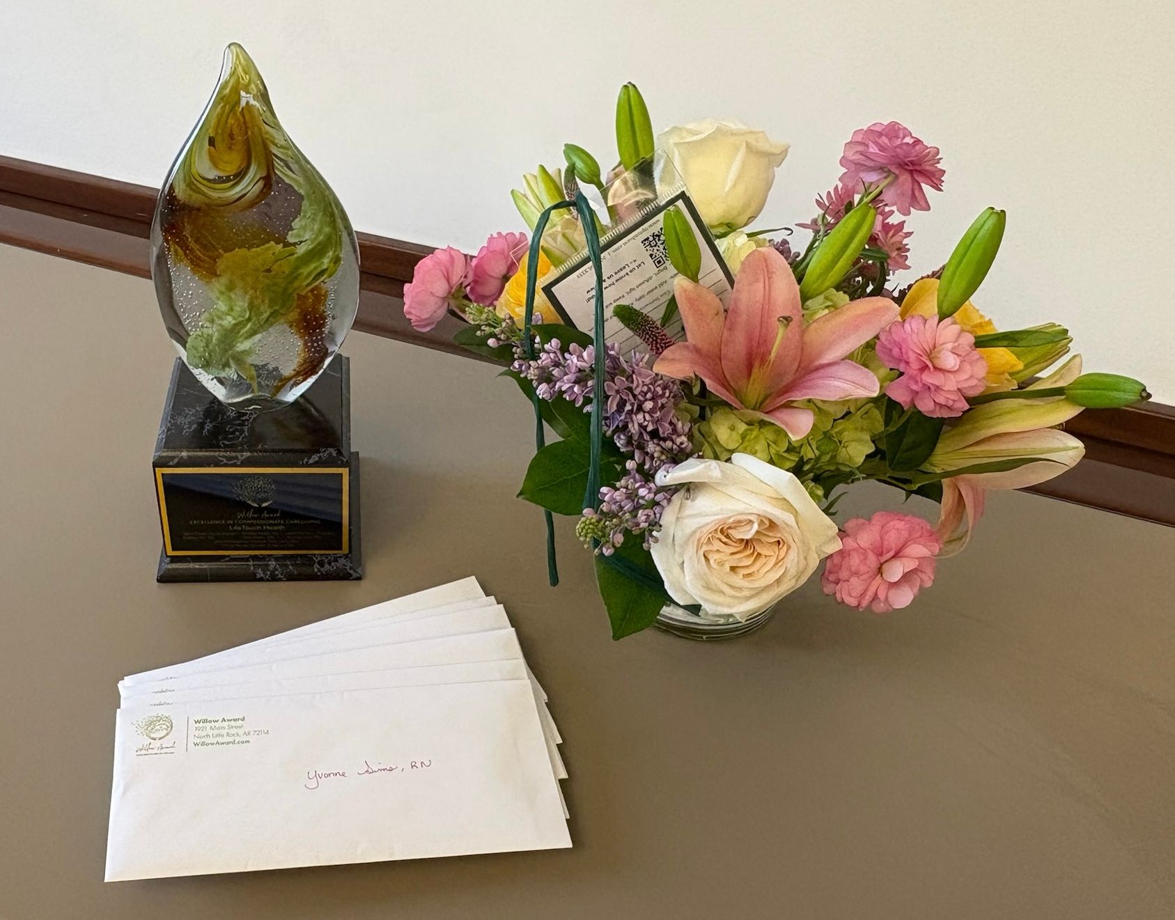 Like a willow tree, a caregiver working in end-of-life care bends to accommodate the needs of their patient and family in their storm. Regardless of the challenges that lie ahead, these caregivers are steadfast and resilient to the very end. Like the pliant Willow tree, they will stand back upright and tall, ready to care for another patient. This award is for them!