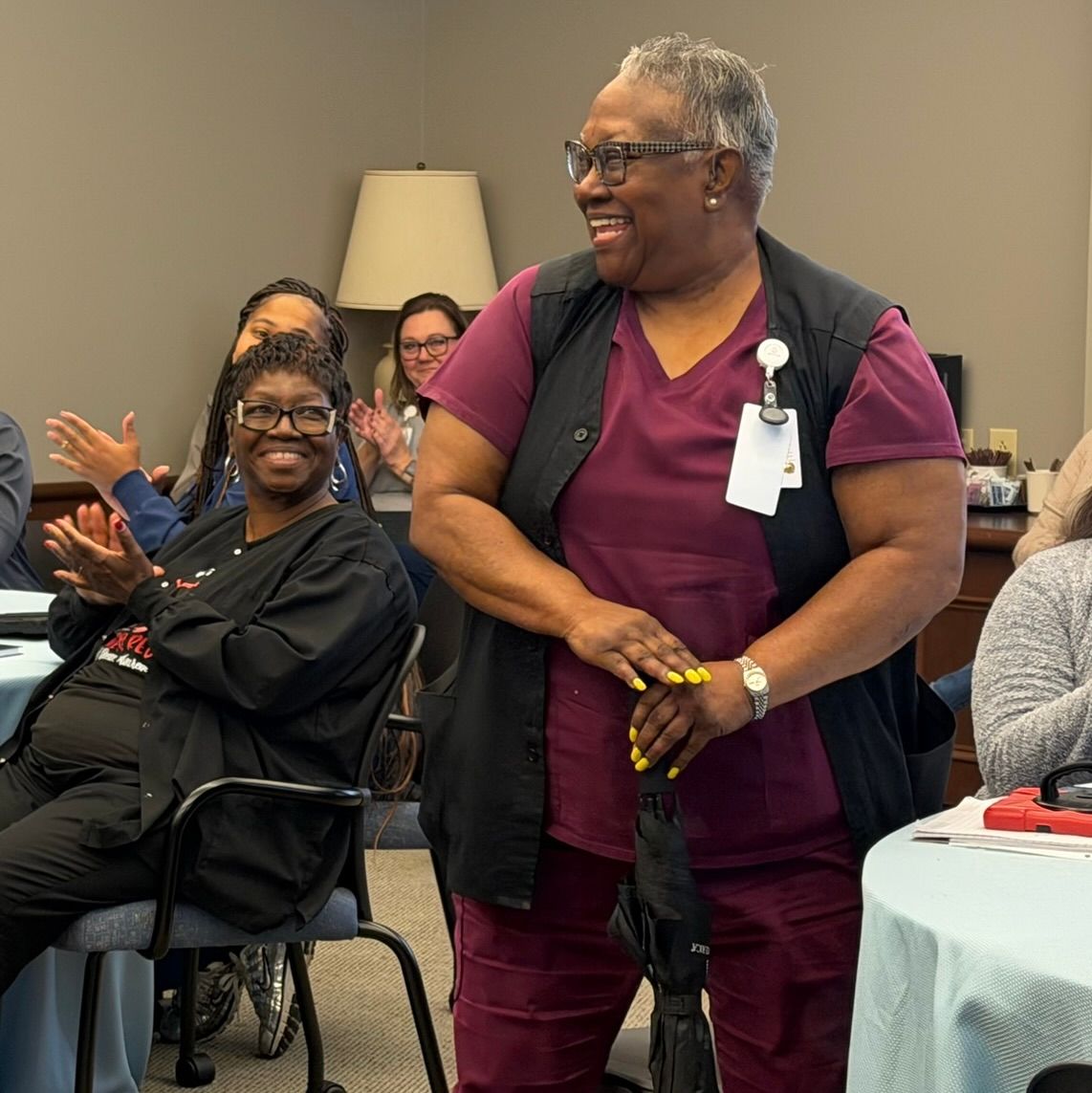 On September 6, 2023 we surprised the Hospice Homecare Comfort Care Center Team in Little Rock during their staff meeting to award the entire team with a Willow Award for exceptional end-of-life care. The team was nominated by Laura Wyrens, the daughter of the late Mr. Donald Gassaway. Traditionally, we honor a person, but in the words of Ms. Wyrens, "After my experience at Hospice Homecare, I simply cannot identify one specific individual to recognize as the entire team was simply amazing."